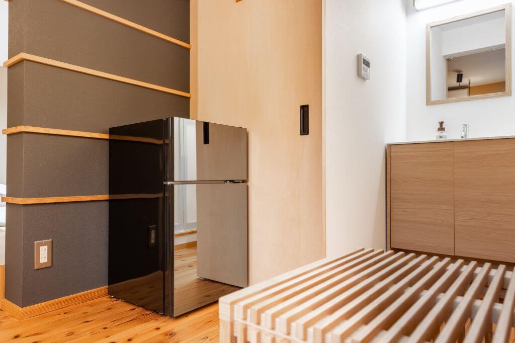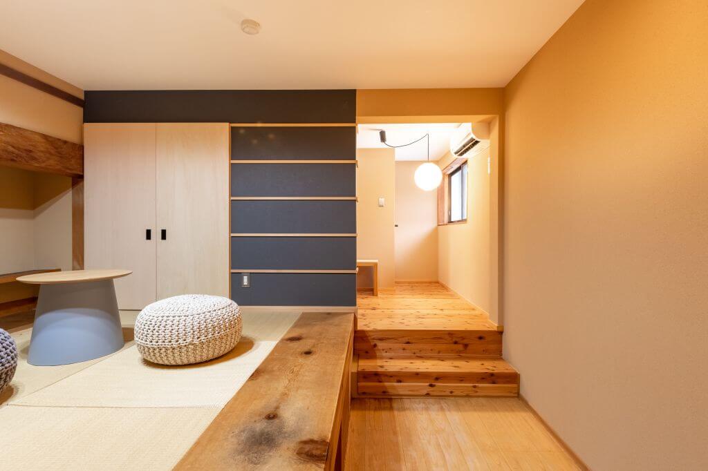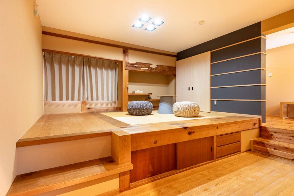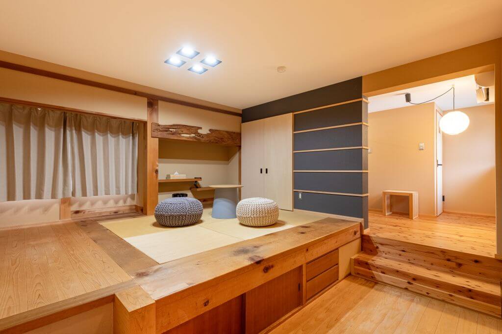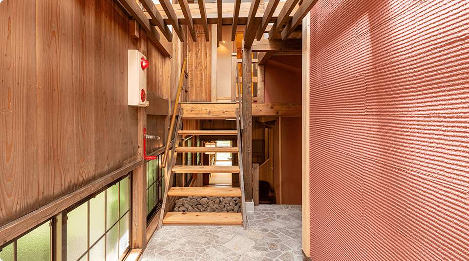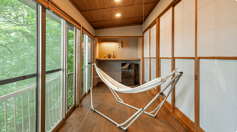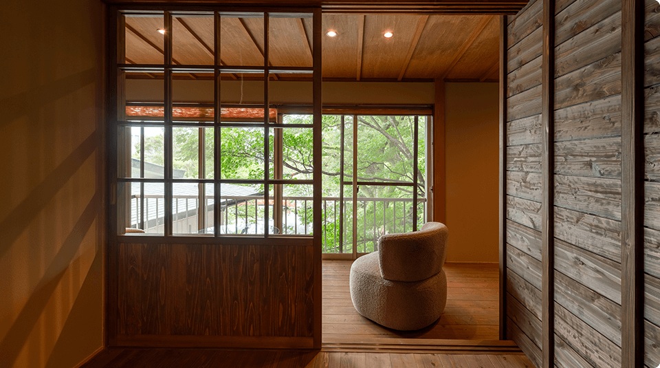 浅間大社の竹林に隣接しており、お部屋の中の移動の際に、自然の匂いや、風を、感じることができるようデザインされました。