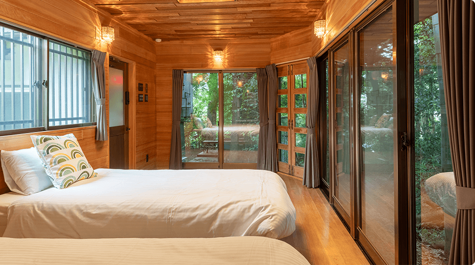 竹林の奥深さを感じさせる静寂と穏やかな時間が流れるお部屋です。